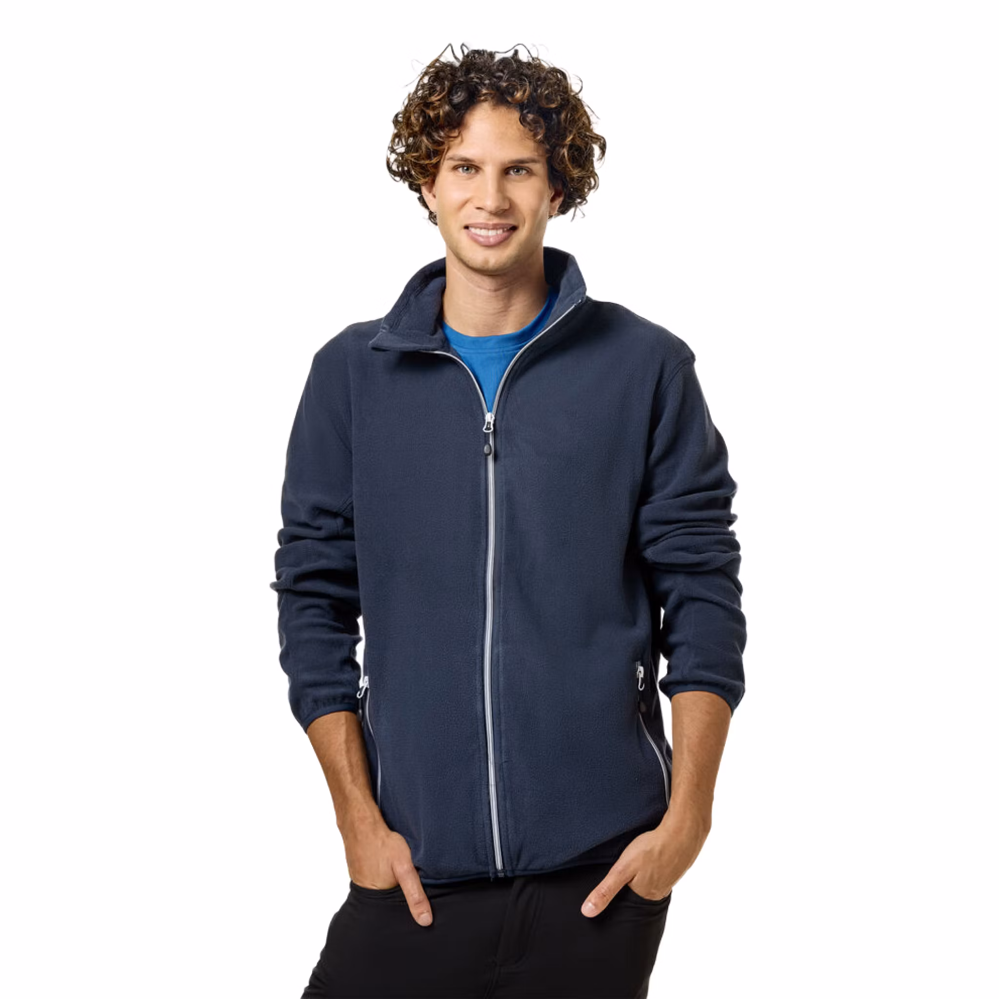 Lätt och värmande microfleecejacka av mjuk polyesterfleece som ger god isolering och komfort vid både arbete och fritid. Jackan har ett rent uttryck med vita dragkedjor i både framfickor och frontöppning, vilket ger en tydlig kontrast och ett modernt utseende.