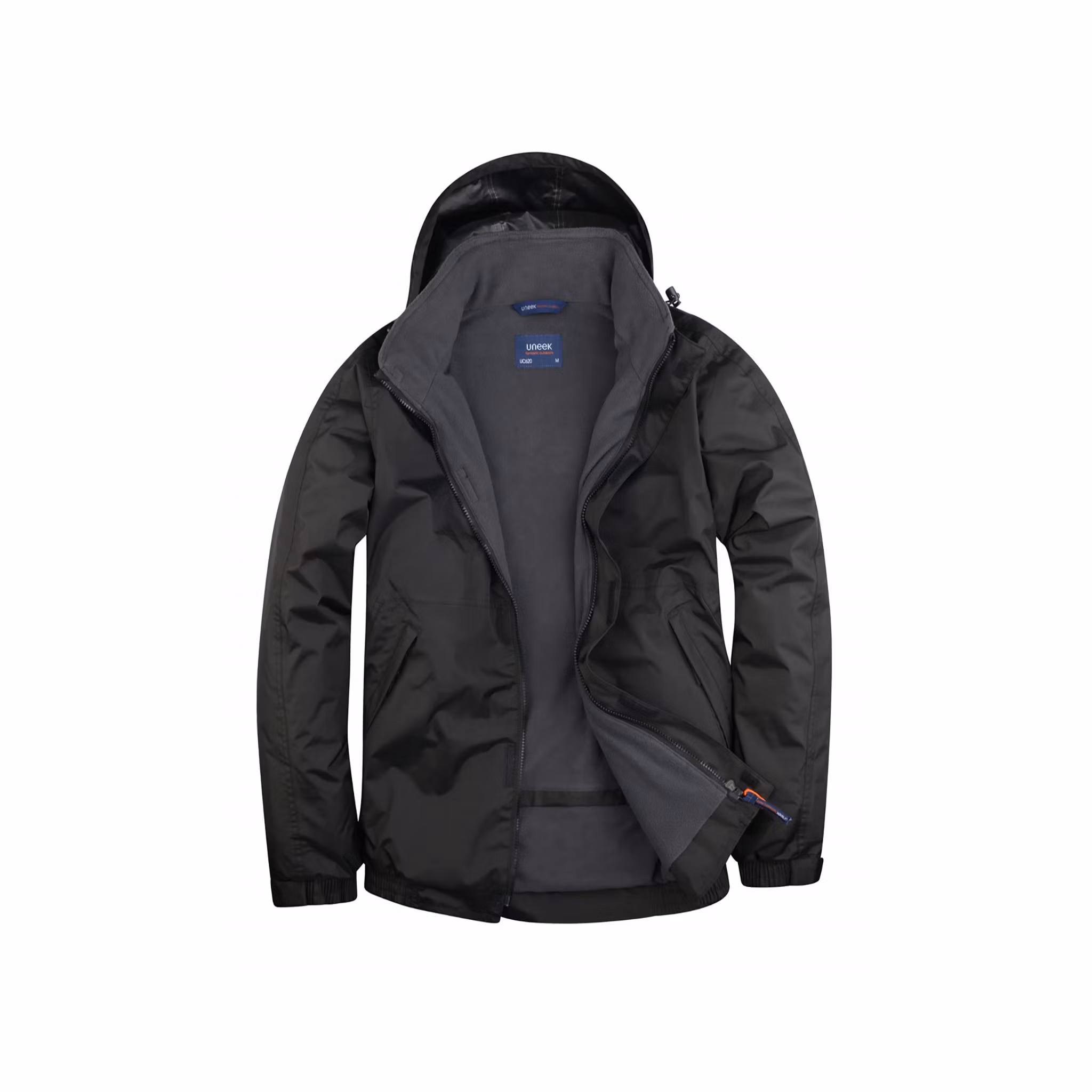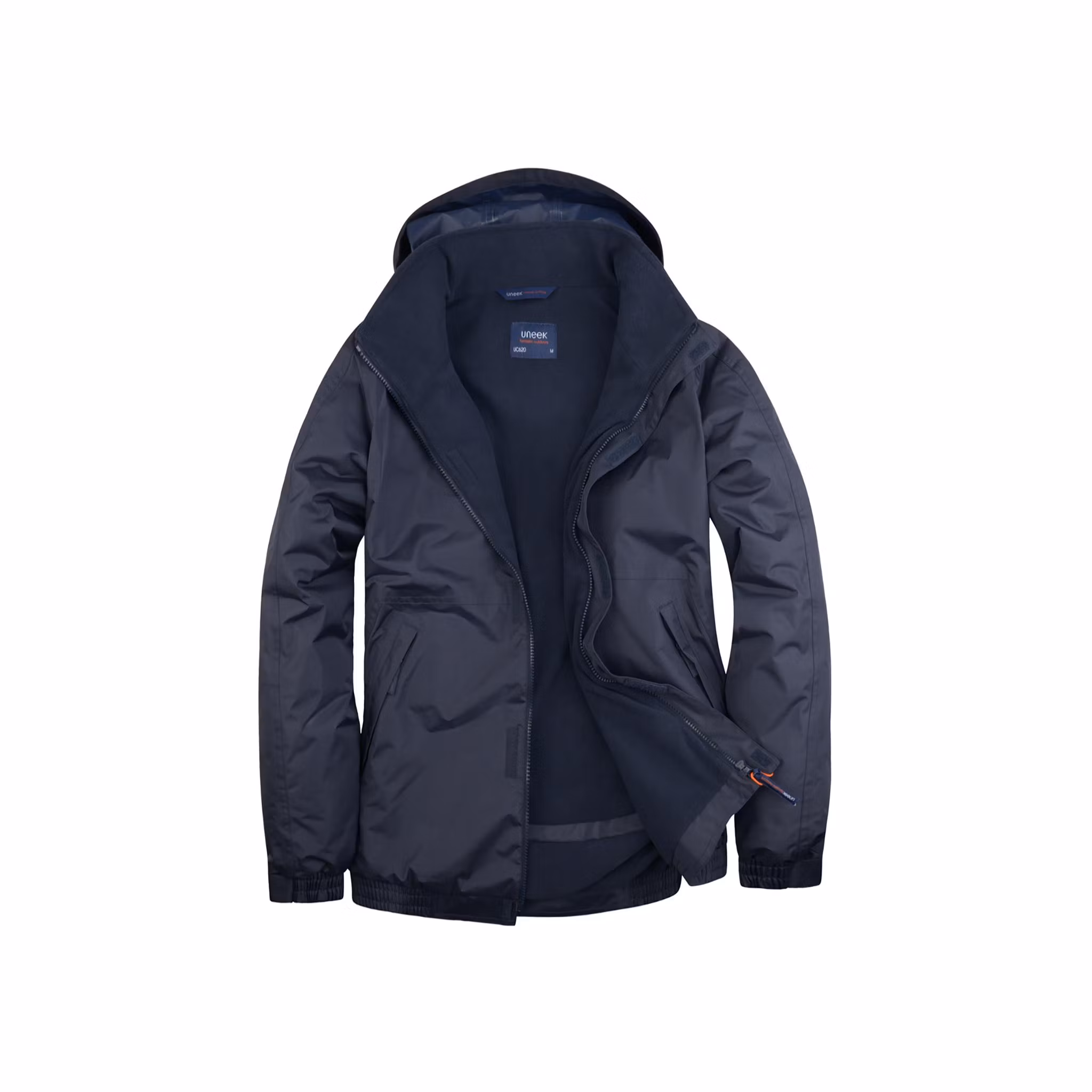 Detaljer: Vattentät konstruktion med tejpade sömmar, vindskyddande material, vattenpelare 5 000 mm, dold huva, modern passform, fleecefodrad krage, microfleecefoder för extra komfort och värme, isolerade ärmar, två framfickor med dragkedja, säker innerficka, invändig upphängningsögla, justerbara ärmslut, elastisk nederkant, dold dragkedjeöppning för brodyr/åtkomst (embroidery access)