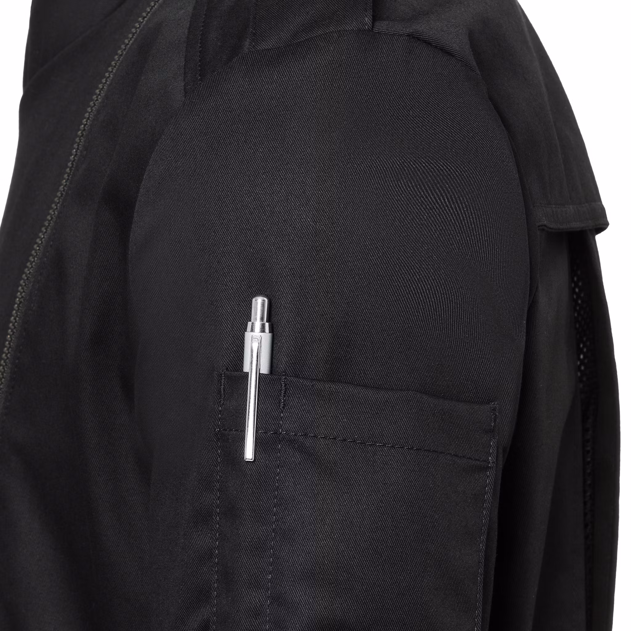 Utrustad med dubbla metallblixtlås framtill för flexibel och smidig stängning. Ventilationspaneler i mesh på ryggen samt ventilationshål under armarna ger effektiv luftcirkulation. Rörliga ryggpartier och justerbara ärmar bidrar till hög komfort, medan praktiska detaljer som ärmficka med pennfack gör jackan funktionell i det dagliga arbetet.