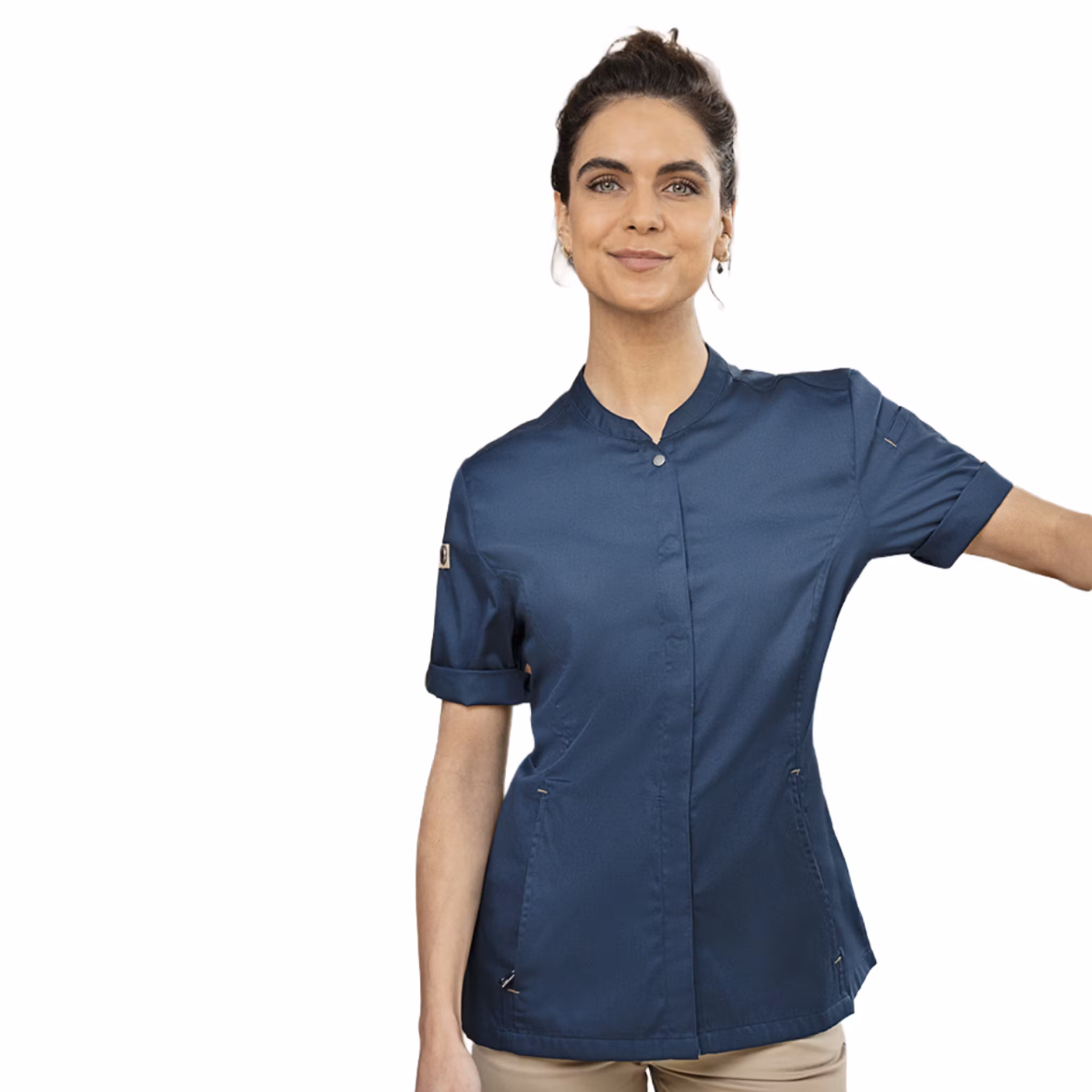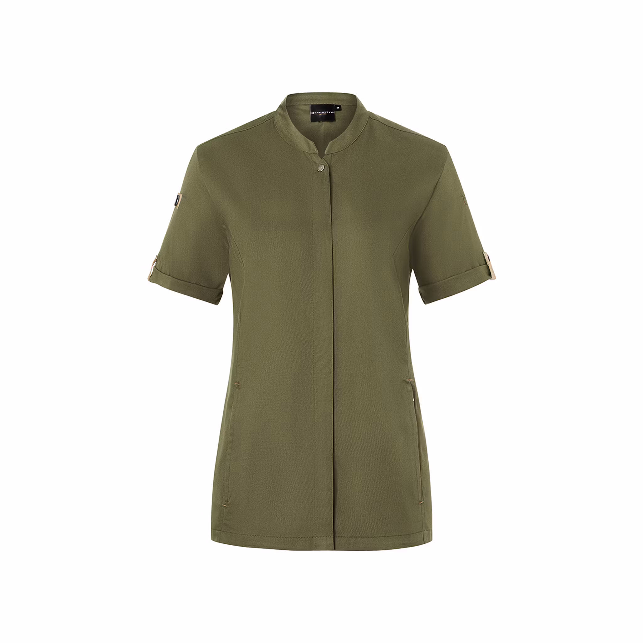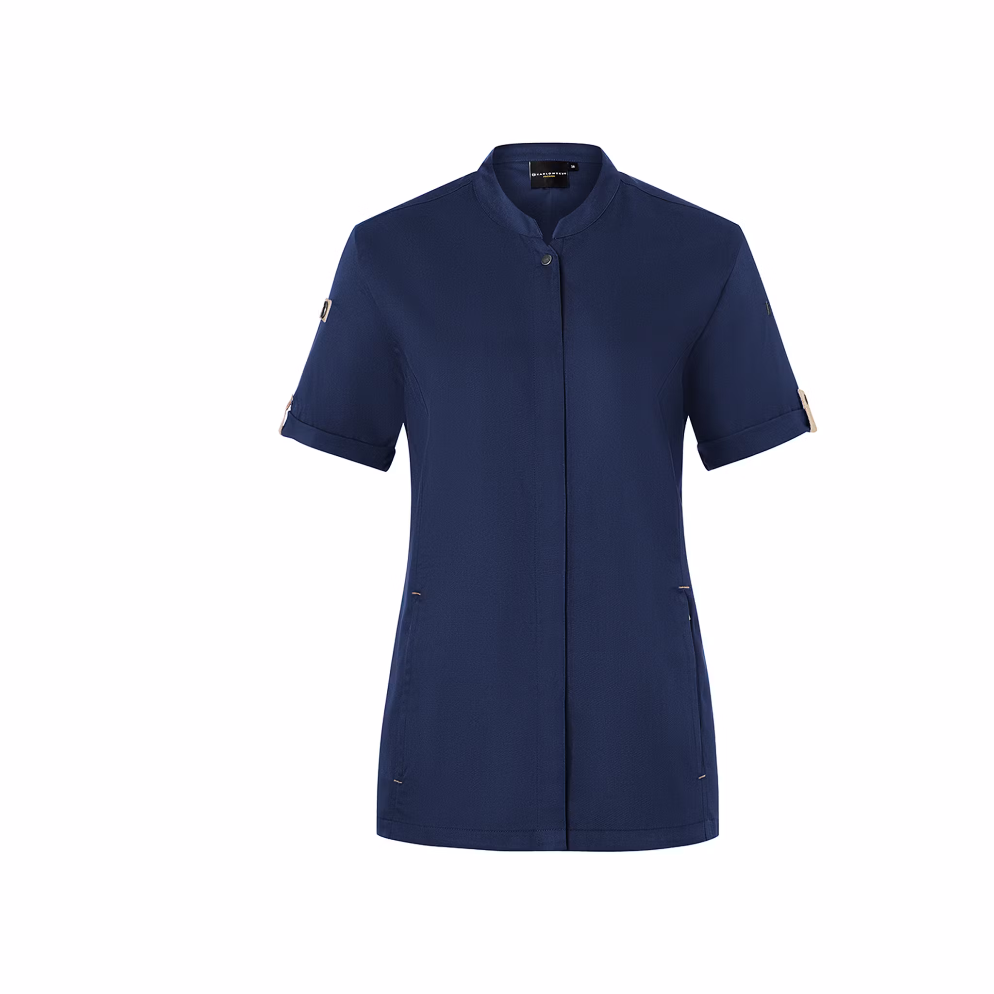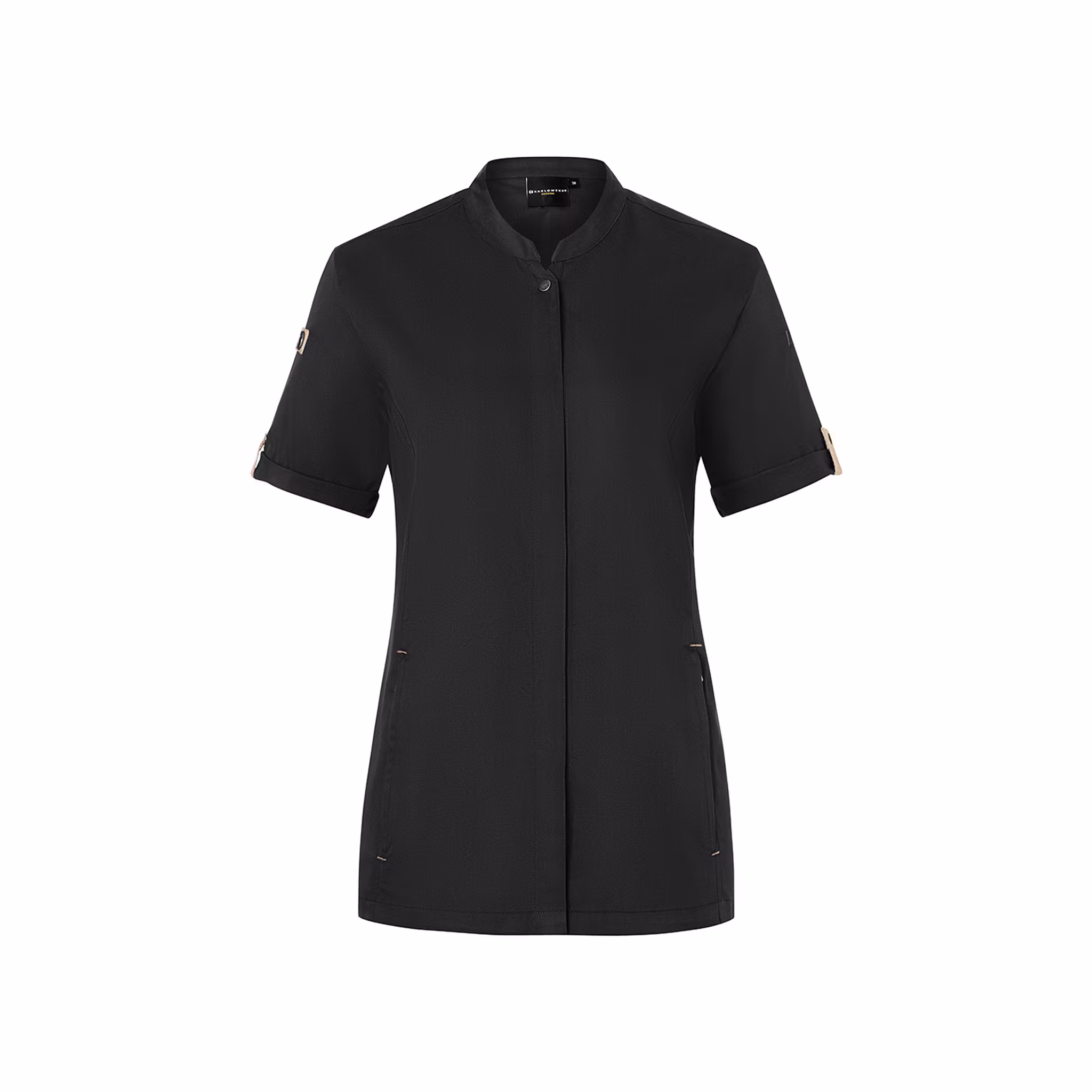 Den lätt insvängda passformen ger ett mer skräddat uttryck samtidigt som den ventilerande ryggpanelen i jersey piqué förbättrar luftcirkulationen och bidrar till ökad rörelsefrihet. Praktiska detaljer som dragkedjefickor framtill och ärmficka gör kockrocken funktionell i det dagliga arbetet.