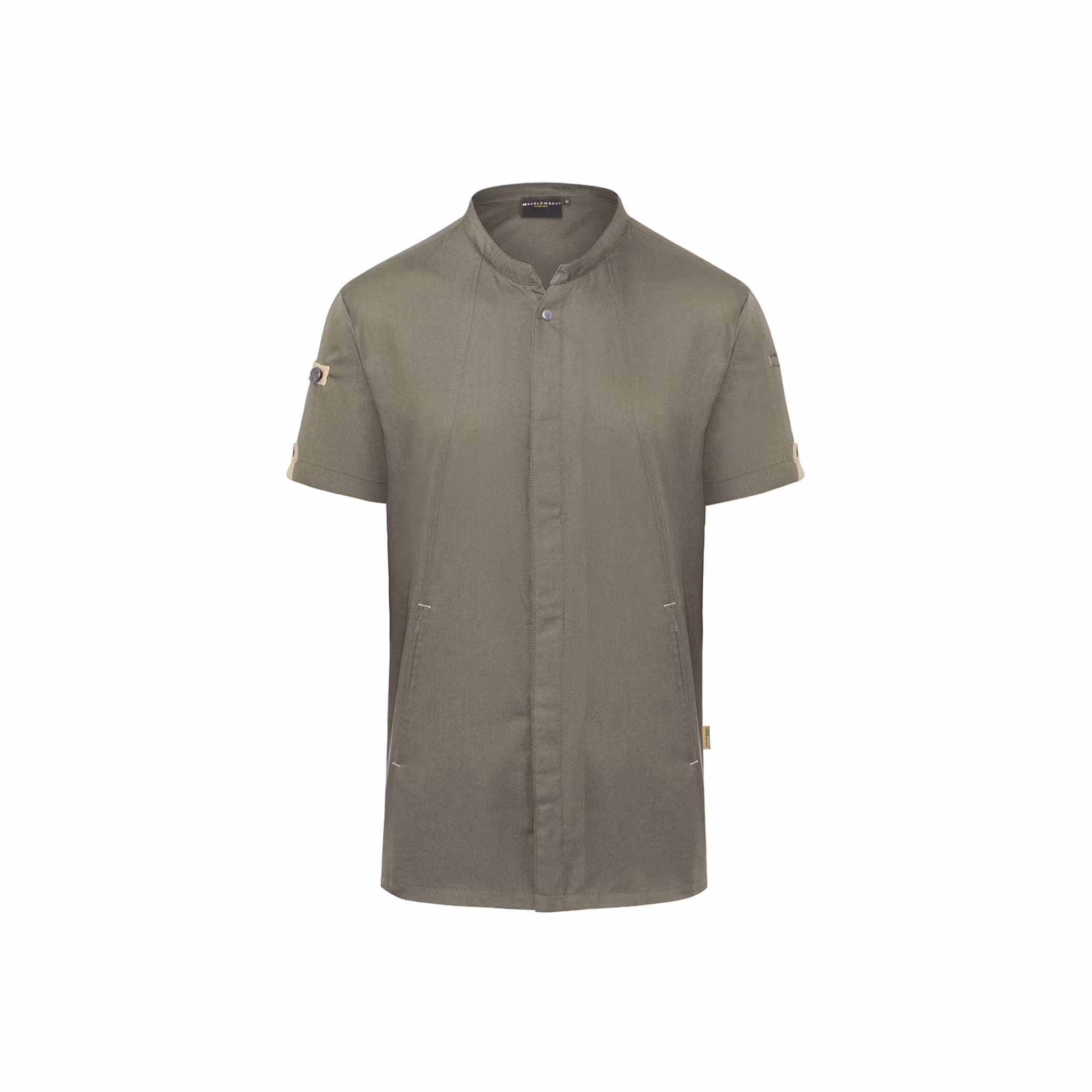 Den lätt insvängda passformen ger en mer kroppsnära silhuett, samtidigt som ryggpanelen i ventilerande jersey piqué förbättrar luftcirkulationen och ger ökad rörelsefrihet. Praktiska detaljer som dragkedjefickor framtill, ärmficka och tryckknappar gör kockrocken smidig och funktionell i det dagliga arbetet.