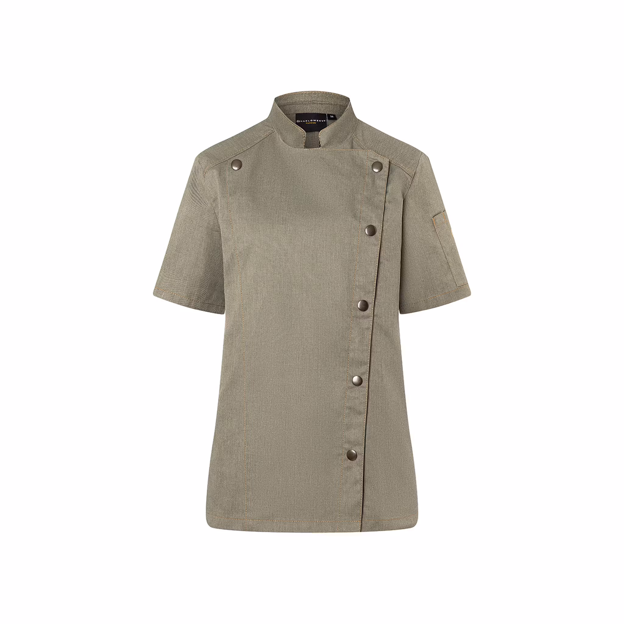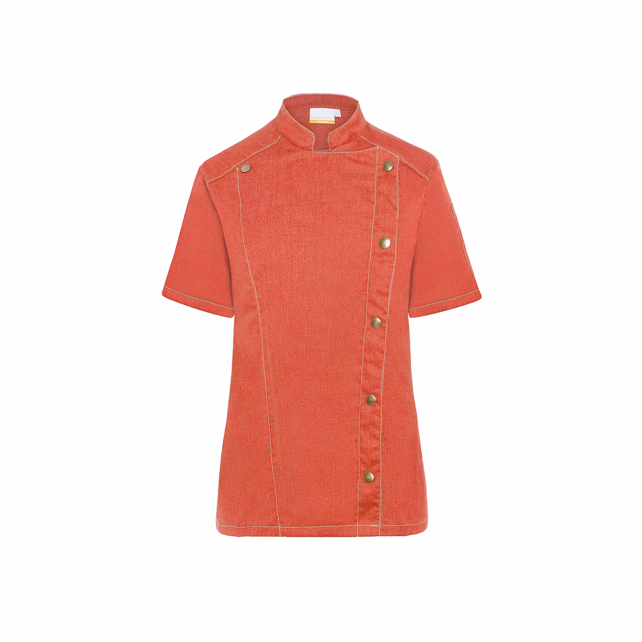 En modern och trendig kockjacka med jeansinspirerad design, framtagen för arbete i varmare köksmiljöer. De kontrasterande sömmarna ger ett tydligt jeansuttryck samtidigt som materialet är slitstarkt, förkrympt och färgbeständigt för långvarig användning.