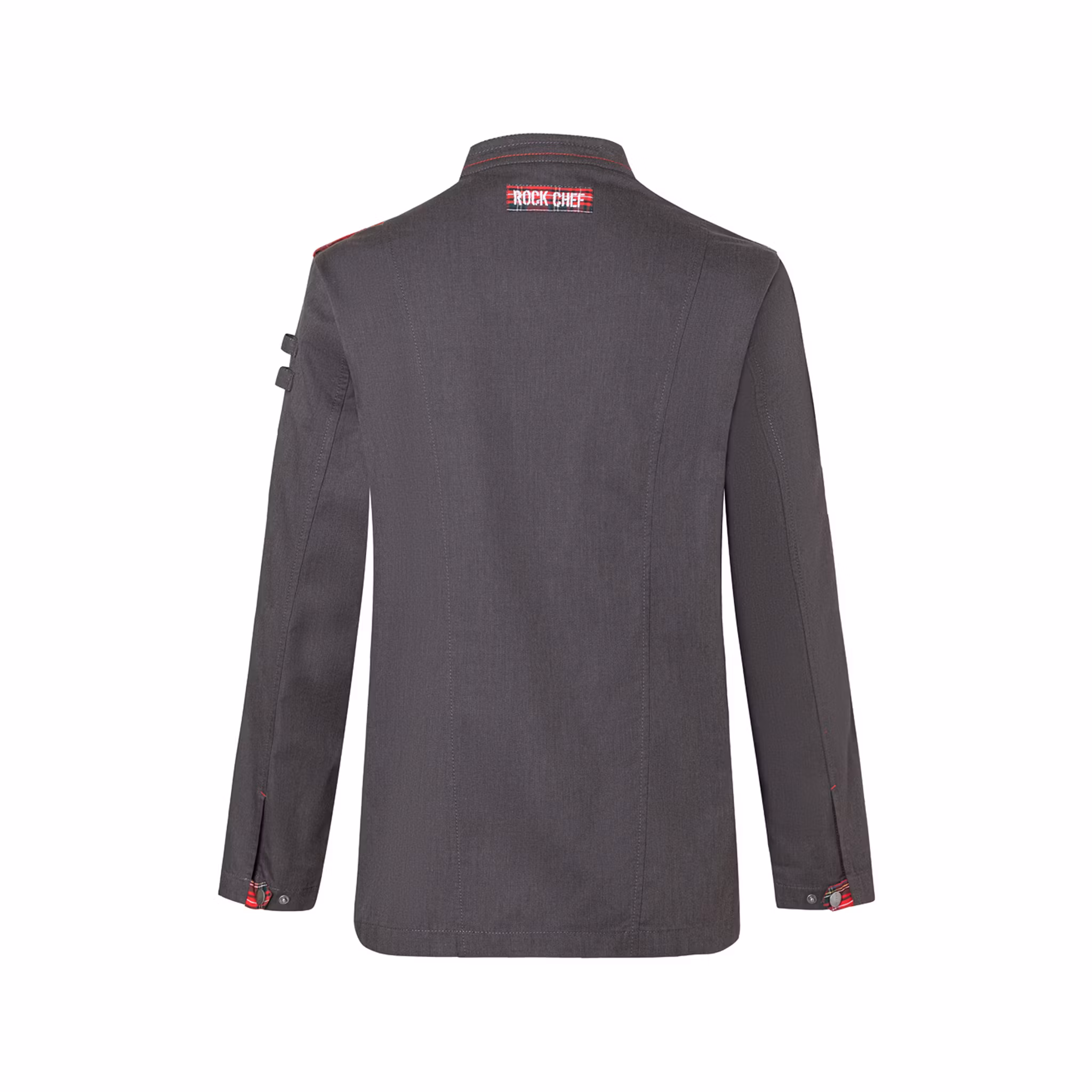 En modern kockrock i denimlook från ROCK CHEF®-Stage2-serien, inspirerad av den brittiska rockscenen. Designen kombinerar ett rakt snitt med tydliga kontrastdetaljer som ger ett uttrycksfullt och samtida intryck i köket, samtidigt som materialet är slitstarkt och lättskött för daglig användning.