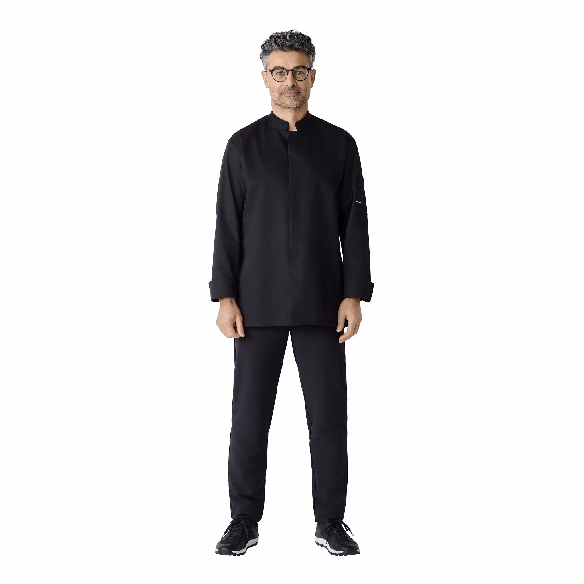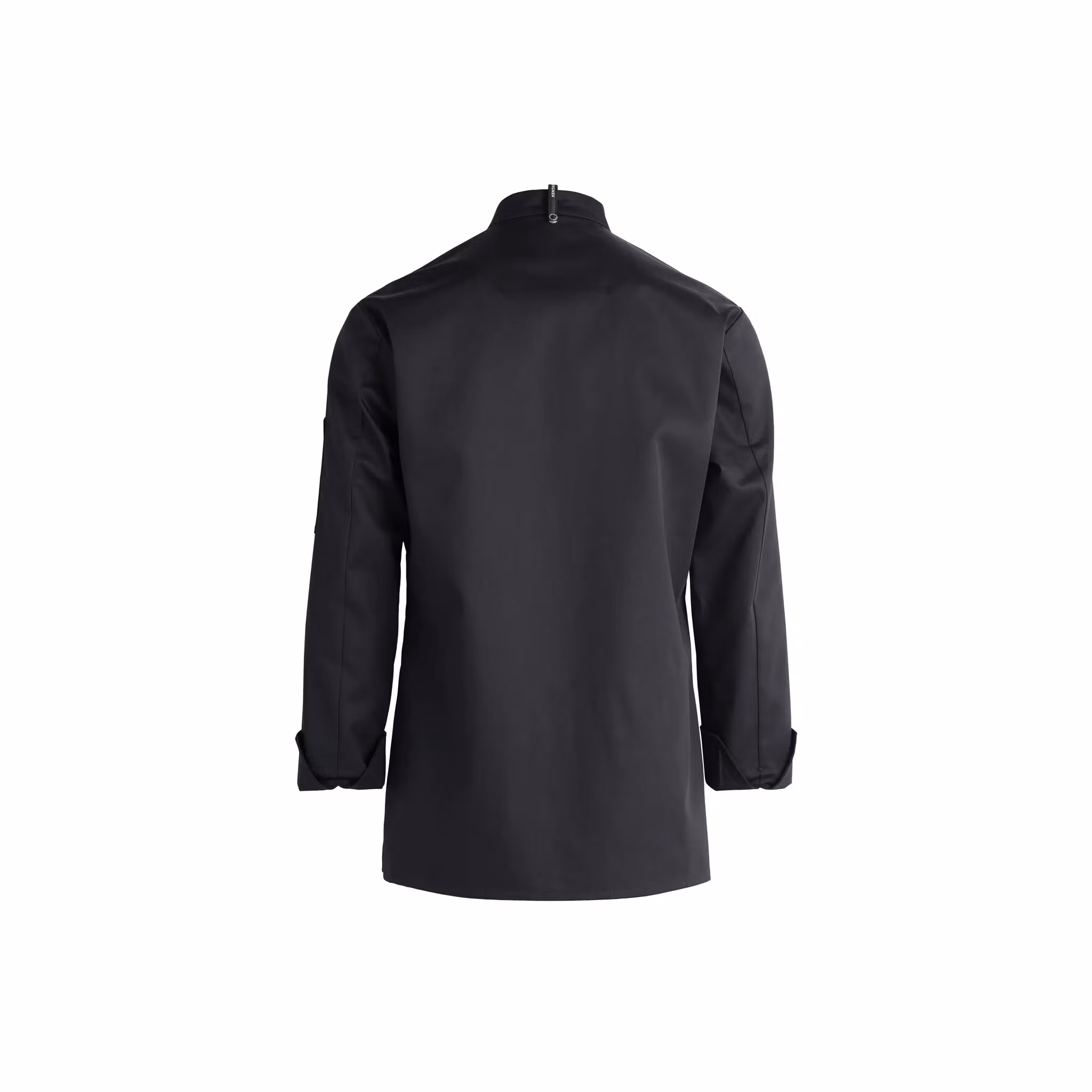 Bekväm och slitstark unisex kock-/servicejacka med A-skärning för bra rörelsefrihet och en professionell siluett under långa arbetspass. Tillverkad i ett tåligt polycotton-material med rejäl vikt som passar utmärkt för dagligt bruk inom kök, restaurang, servering och service. Jackan har en flätad front som ger ett stilrent intryck och gör det smidigt att komma åt knäppningen, samtidigt som dolda tryckknappar bidrar till en ren och proffsig look. För extra funktion finns slits i sidan för ökad komfort, en pennficka på vänster ärm samt en praktisk hank i nacken med tryckknapp – perfekt för bröstförkläde. Passar både män och kvinnor.