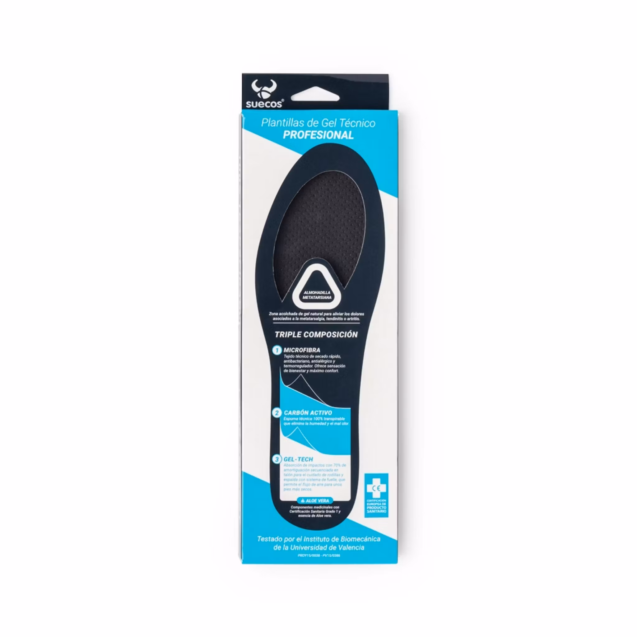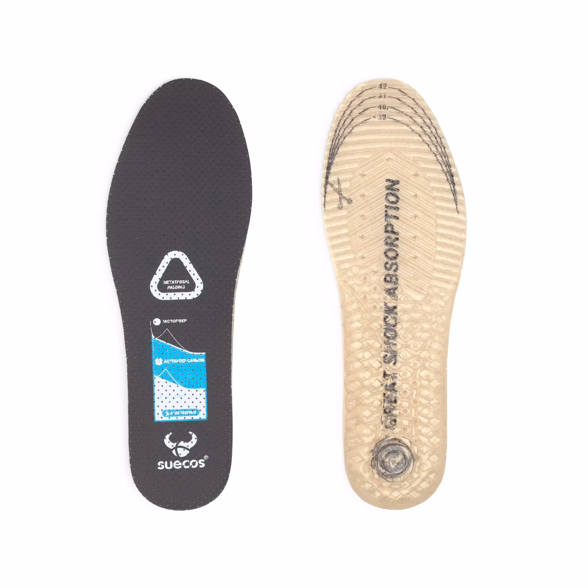 Avancerade innersulor med tre lager som kombinerar komfort, hygien och effektiv stötdämpning. Konstruktionen med mikrofiber, aktivt kol och gel ger en mjuk känsla samtidigt som sulorna absorberar stötar och avlastar fötter, knän och rygg.