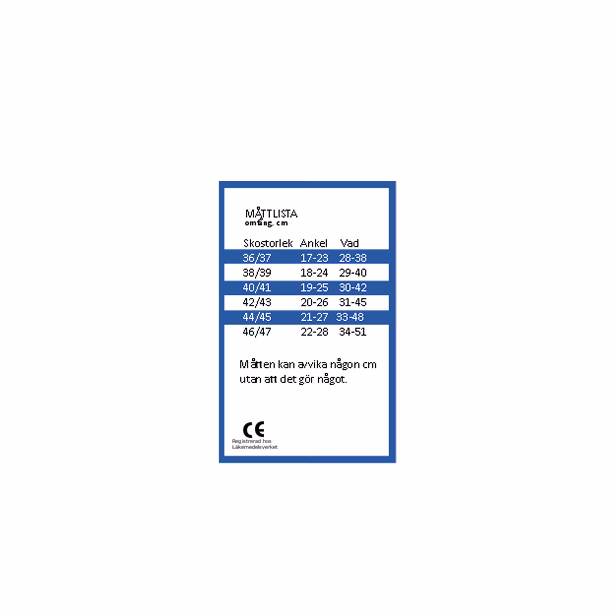 Välj vanligtvis storlek efter din skostorlek ? om du har kraftigare vader eller längre ben rekommenderas du att gå upp en storlek (gäller samtliga Medisox knästrumpor).