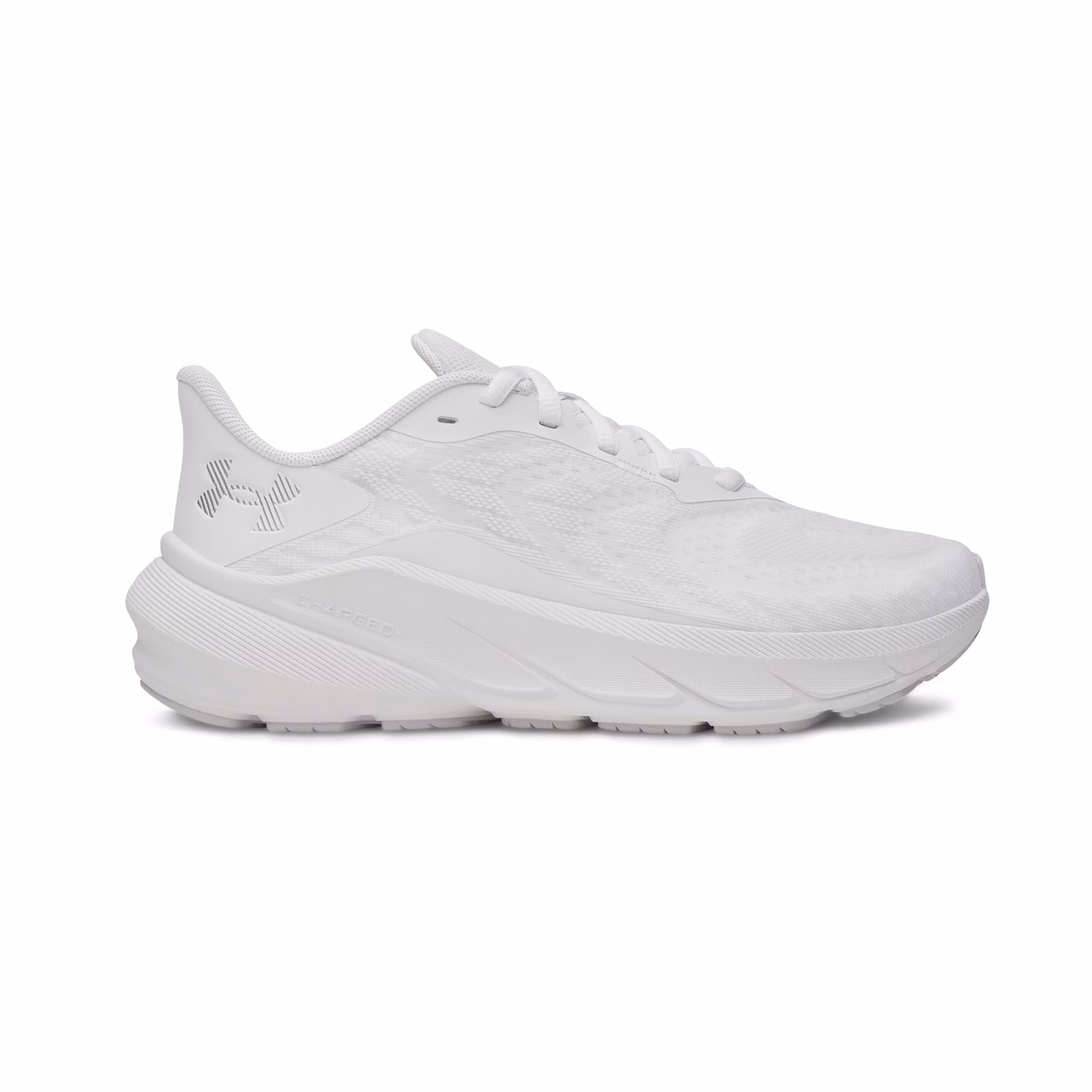 Den ventilerande ovandelen i lättviktsmesh ger stöd och håller foten sval, medan HOVR-dämpningen ger energiåtergivning och mjukt frånskjut i varje steg. Den slitstarka gummiyttersulan ger stabilt grepp och lång livslängd, och ett drop på 8 mm bidrar till naturlig löpkänsla och stabilitet.